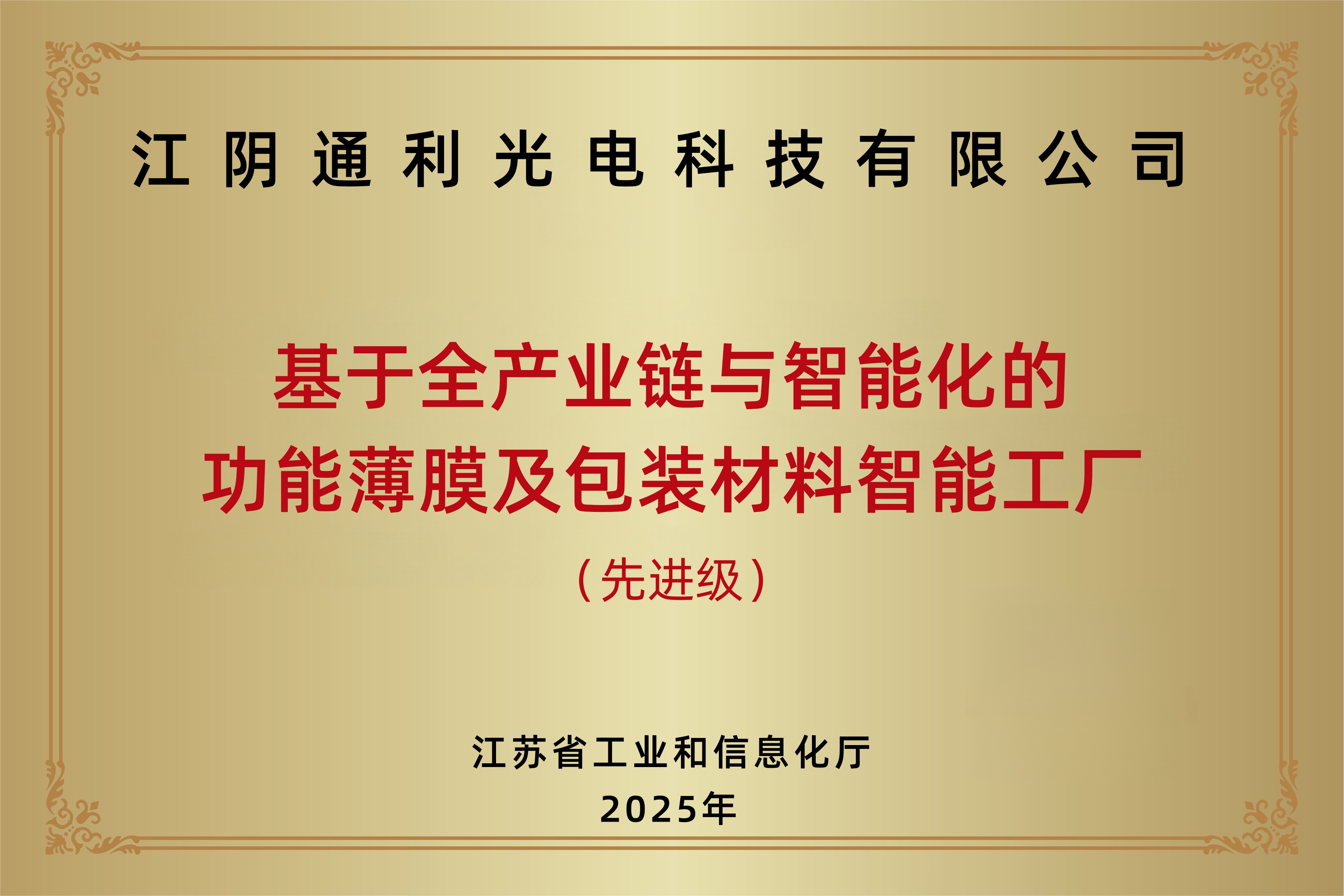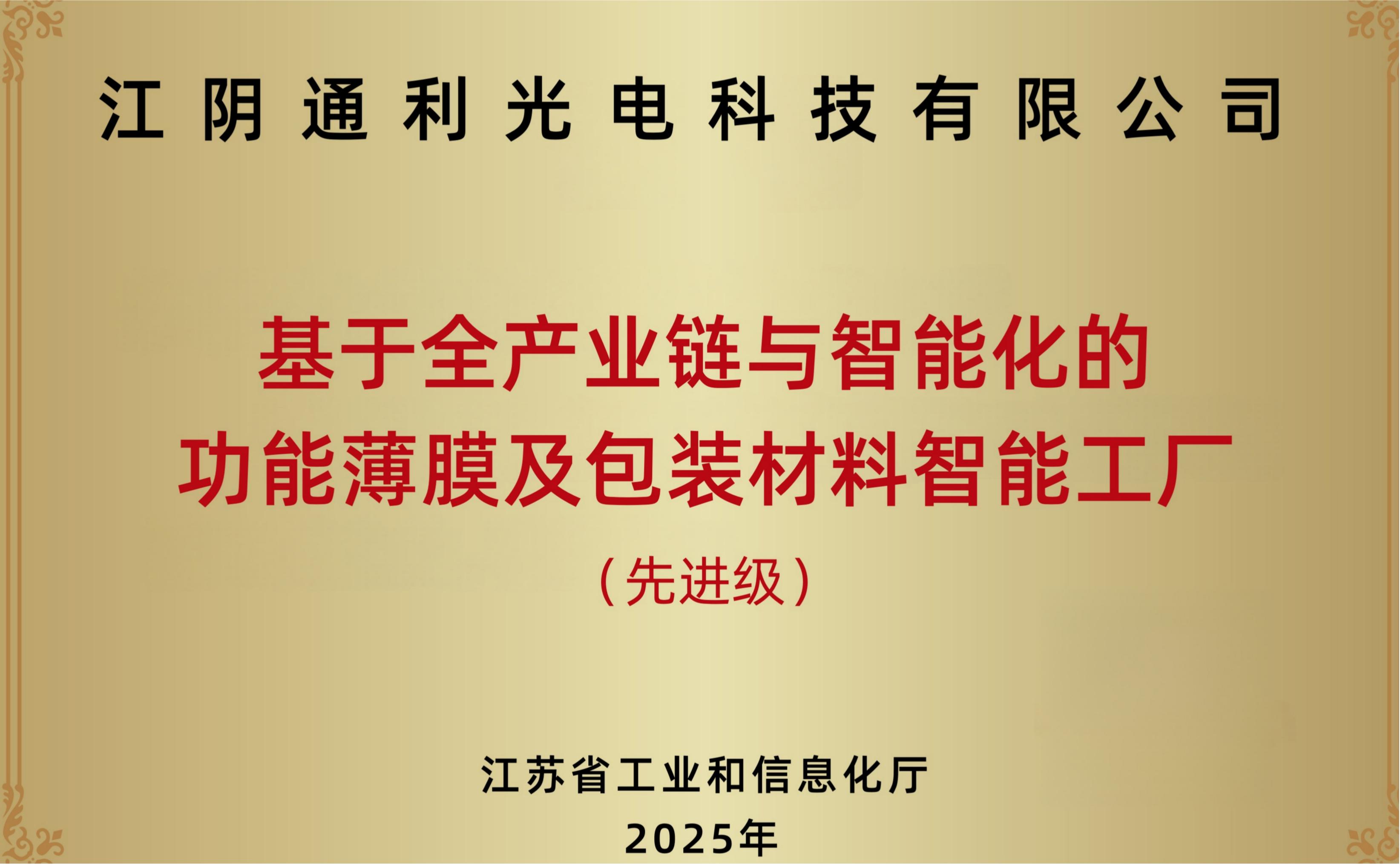 荣获"江苏省先进级智能工厂".